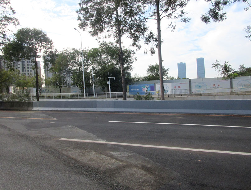 | 北区中环出生物岛隧道原先临时凿建的引入坡道,已经完全恢复中环道路原状,路边低矮围栏墙也是修筑一新,看着是舒服多了 | ||||||