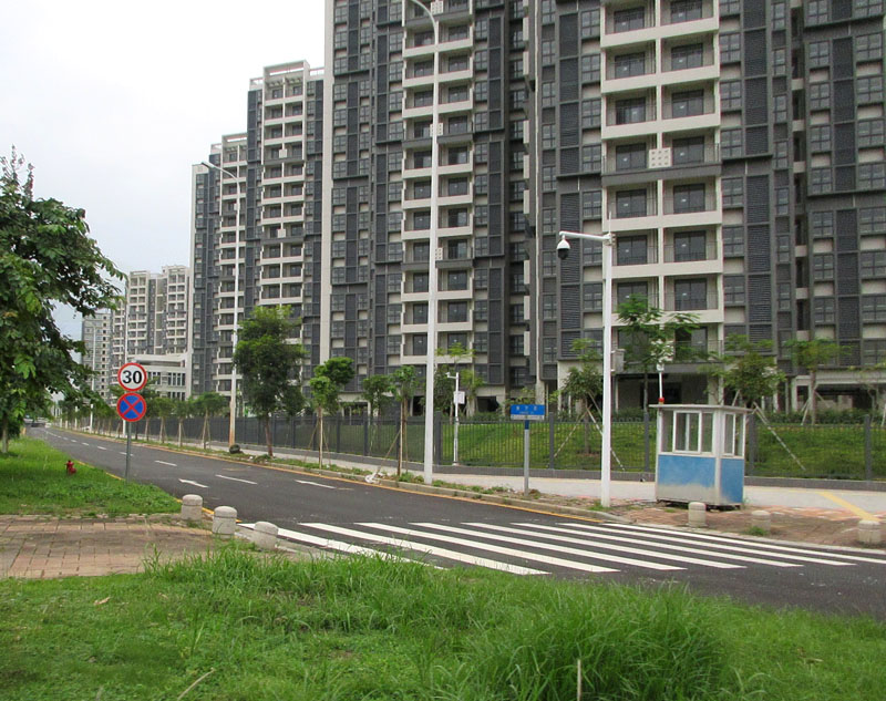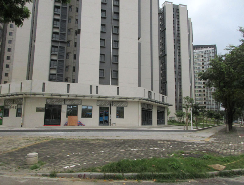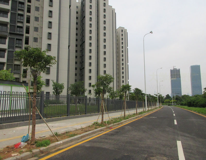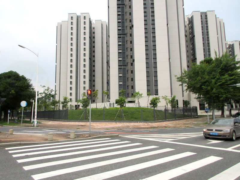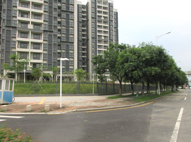 目前看到反倒是位于靠南部的一期则四周外围还没有像二期那样一并同时铁围栏隔围起来,看样,估计稍后或国庆假期之后不久也会围起来?还是说其四栋构造刚好围成一个封闭的内区而不需要再加装铁围栏墙?