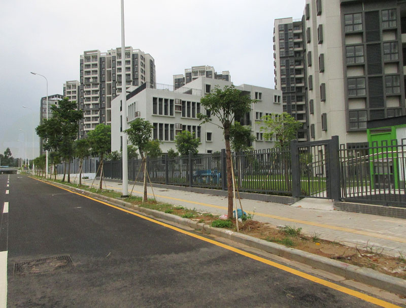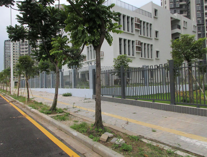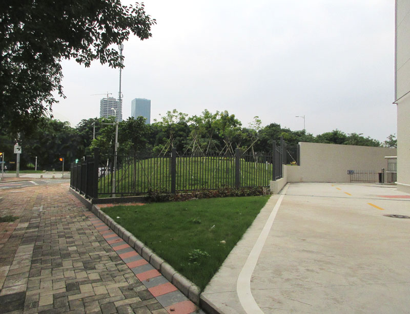 二期东南角的小谷围幼儿园在早先建成时就已经是独立铁围栏墙隔开的