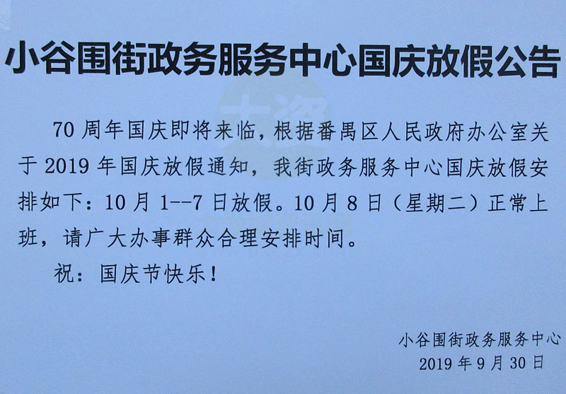 | 小谷围街政务服务中心国庆放假7天,10月8号起正常上班 | ||||||