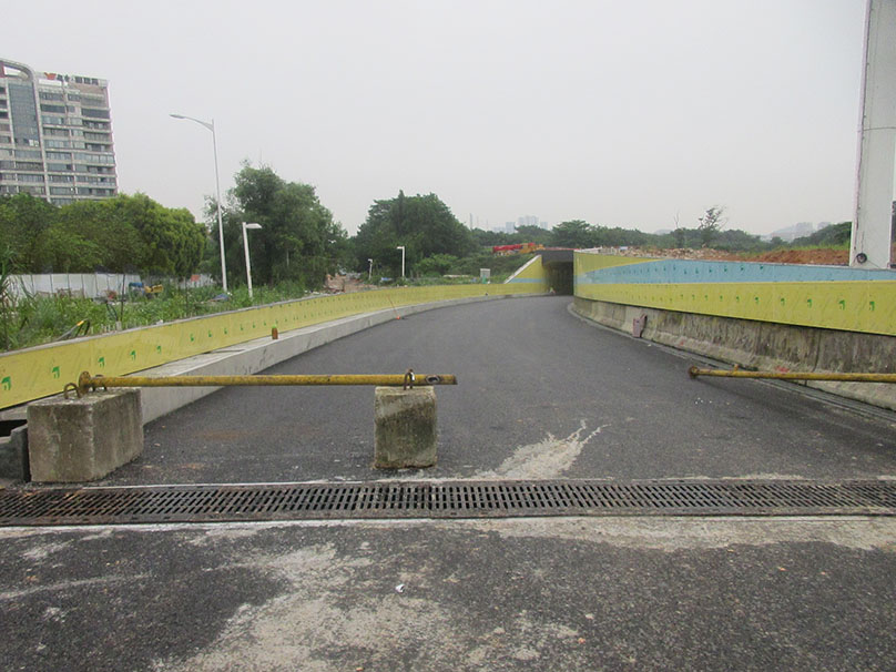大学城来往新造过江之金光东隧道 五一期间看到 这回似乎是真的快要可以通车的模样了喔 西边印象园一侧匝道已基本修好 感觉都至少可以骑单车或电动车下行穿越了