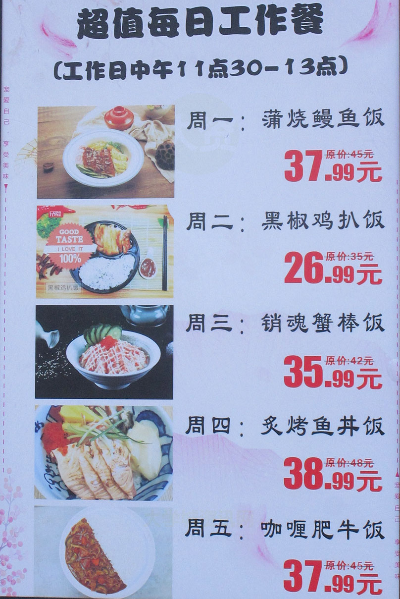 | 明志街南段中 星汇文宇服务楼 江品寿司 超值每日工作餐 周一至周五中午11点半-13点 | ||||||