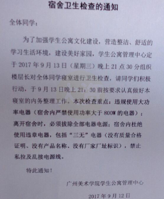 宿舍卫生检查的通知