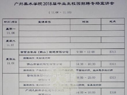 广美2018届毕业生校园招聘专场宣讲会(11.06-11.10)
