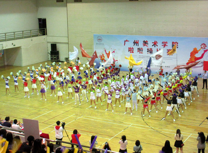 | 体育馆内,一年一度的啦啦操比赛,各院参赛队伍列队进场了 | ||||||