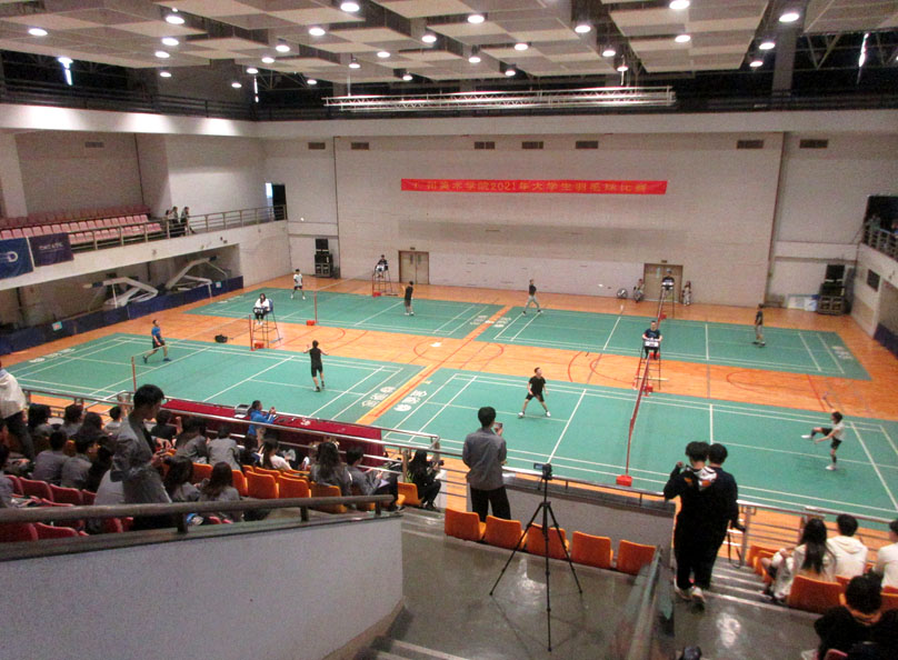 广美校园实时 羽毛球决赛体育馆内正在开打 男单女单男双女双混双五个项目将陆续进行八进四的角逐