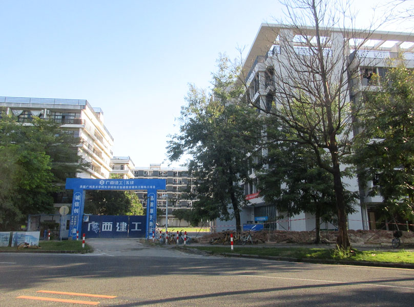 广美生活区北增地块新建宿舍楼外围边缘看到建起了似铁围栏高柱墩,这可不是什么好风气趋势啊,不知是否生活区旧的其它外围是否也会照此围建,本来目前广美生活区就按目前的周围边缘就很合理自然合适,要是真的建起类似那样的高围栏墙,那样广美往后也很难言美了,虽然名字上有个美字,毕竟学校范围本来就不大,再这样一围,感觉肯定挺憋,里外看都不舒服和自然,张牙舞爪的东西从来跟美感没关系,广州大学城当年这么先进的建设理念体系,都快被这两三年多来各校先后建围墙所淹没了,回到两三年以前的过去十五六年里,跟现在比较看,真是无法想象,感觉是拖回了旧时代,开倒车的做法