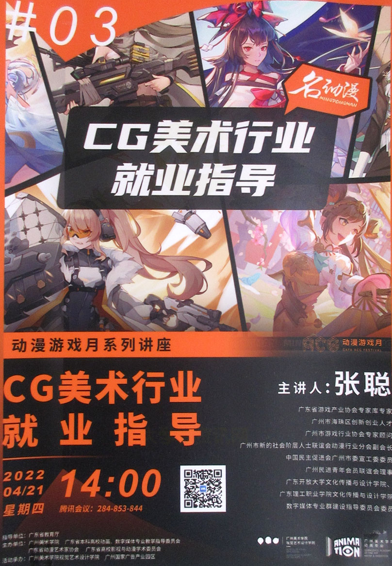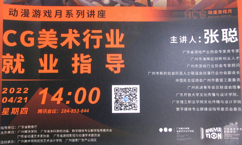| 动漫游戏月系列讲座:CG美术行业就业指导 2022.04.21周四下午14点 线上 | ||||||