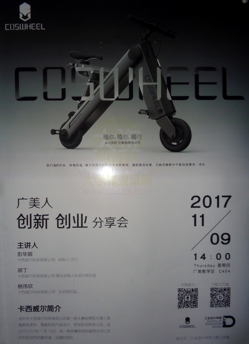 | 卡西威尔 广美人 创新 创业 分享会 2017/11/09 14:00星期四 教学区C404 | ||||||