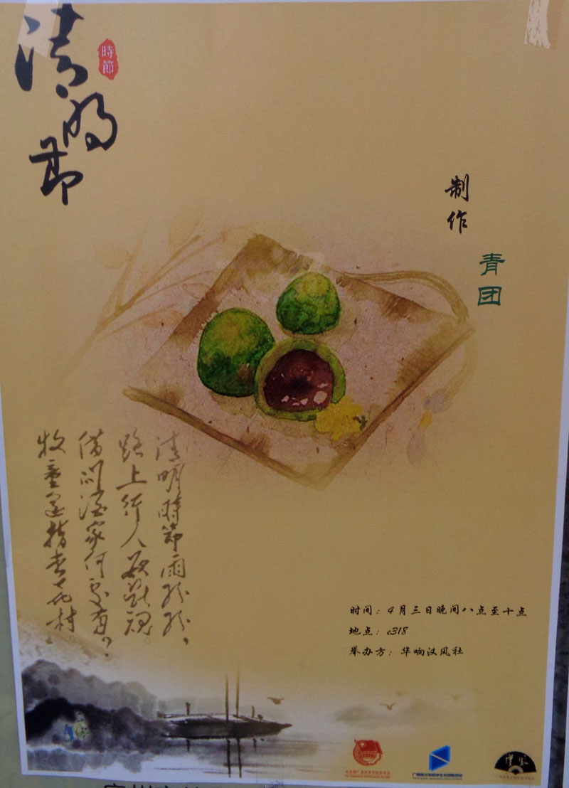| 华响汉风社|清明时节 制作青团 4月3日晚8点至10点 C318 | ||||||