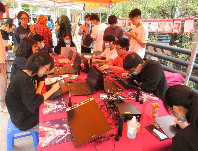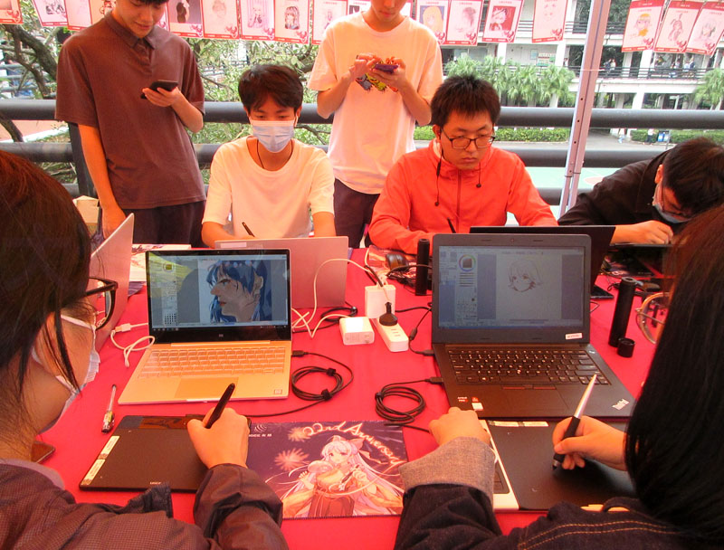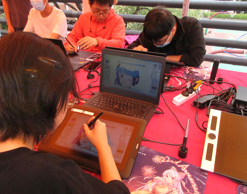| 三平方动漫社摊位似乎有一个合作还是赞助的电子屏手绘作画的现场演示 | ||||||