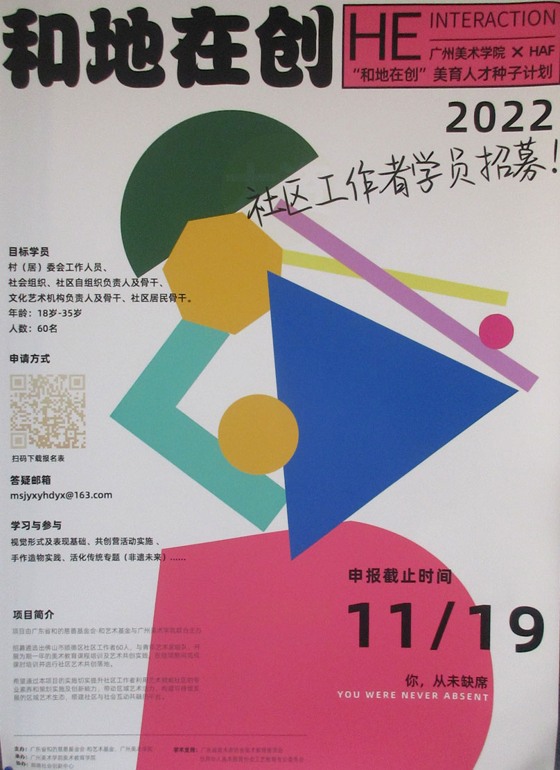 和地在创·2022社区工作者学员招募 目标-村居委会工作人员,社会组织等骨干,年龄18-35,人数60 扫码下载报名表 截止申请11.19 |