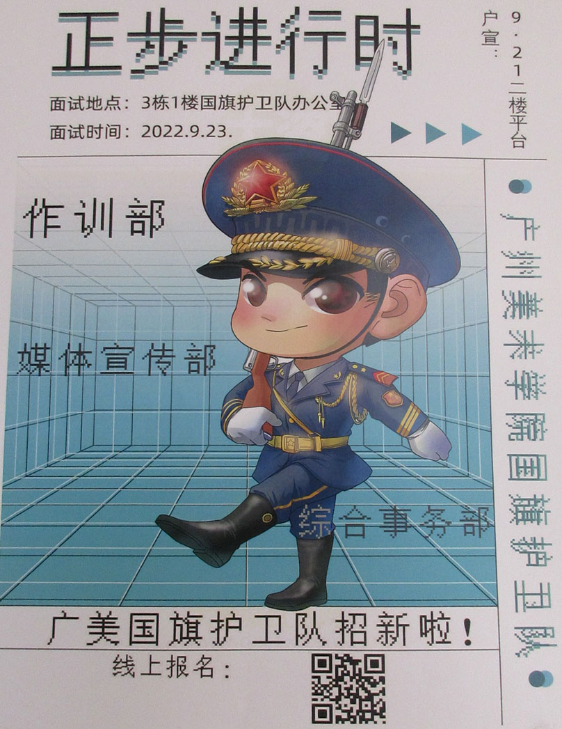 | 广美国旗护卫队2022招新 户宣09.21生活区二楼平台 面试2022.09.23 生活区3栋一楼 | ||||||