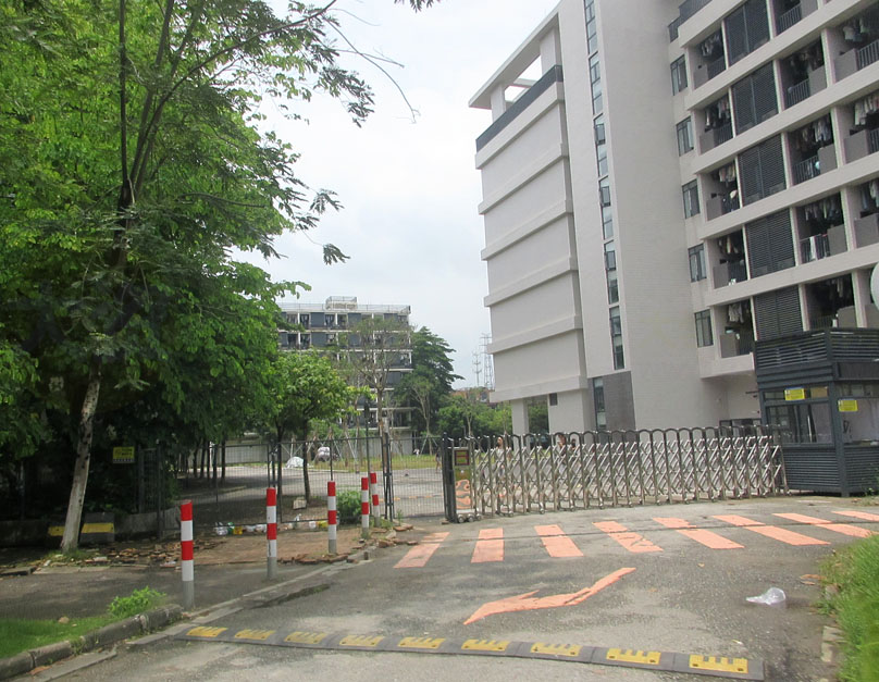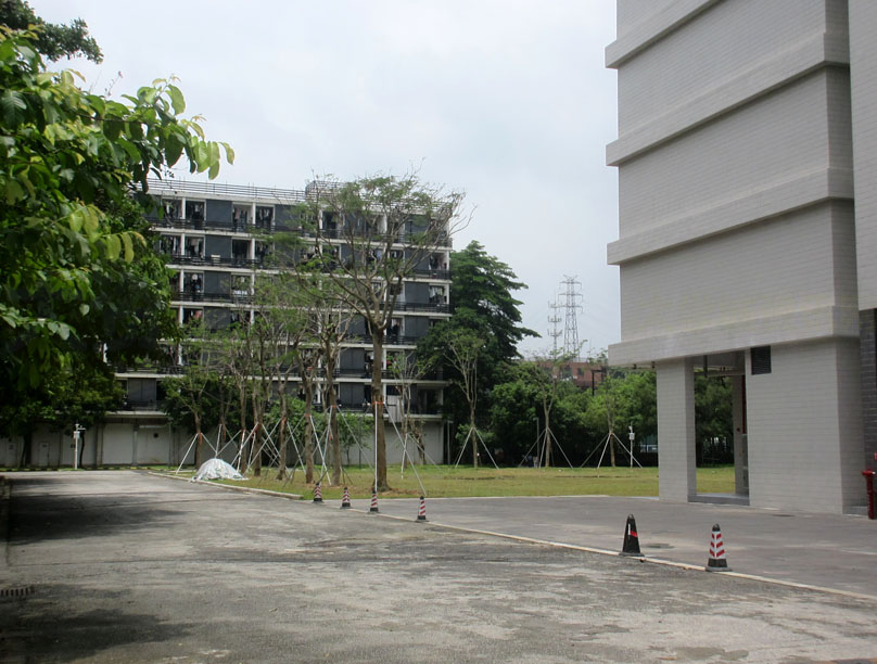 广美生活区新增建宿舍楼前面空地,继铺植草皮后,最新看到还围种了一列树木 该位置可能未来还是预留作建宿舍楼之用