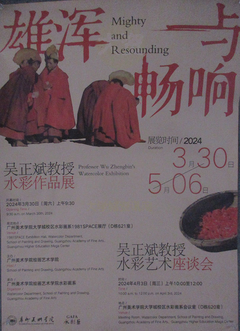 | 广美-绘画-水彩画系-雄浑与畅响 吴正斌教授水彩作品展2024.03.30-05.06 教D栋621室 水彩艺术座谈会2024.04.03周三上午10点-12点 教D栋620室 | ||||||