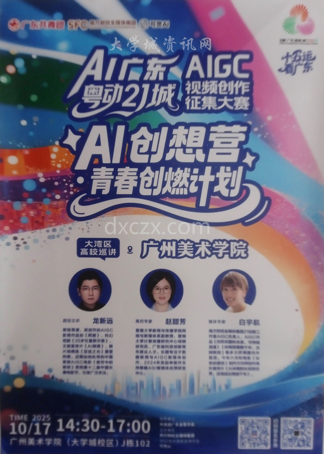 | AI广东粤动21城·AIGC视频创作征集大赛·大湾区高校巡讲·广美站 2025.10.17周五下午14点30分 J栋102 | ||||||