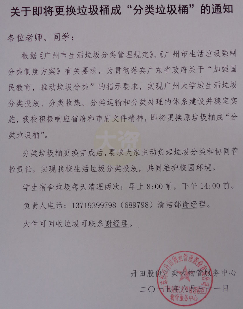 | 关于即将更换垃圾桶成“分类垃圾桶”的通知 | ||||||