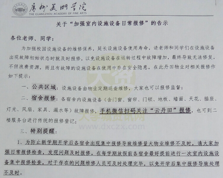 | 关于“加强室内设施设备日常报修”的告示 | ||||||