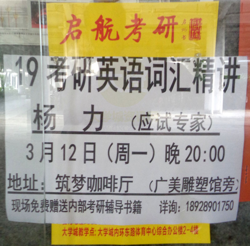 | [考研专题课讲资讯]启航考研|19考研英语词汇精讲 杨力 3月12日晚 | ||||||