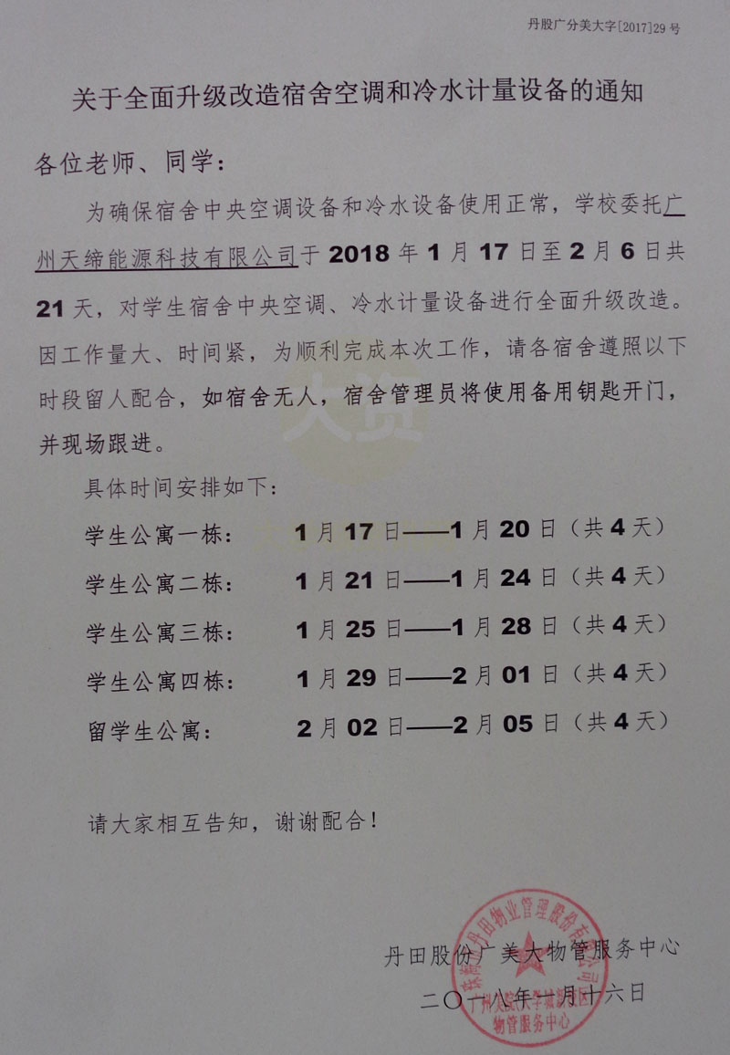 | 关于全面升级改造宿舍空调和冷水计量设备的通知 | ||||||