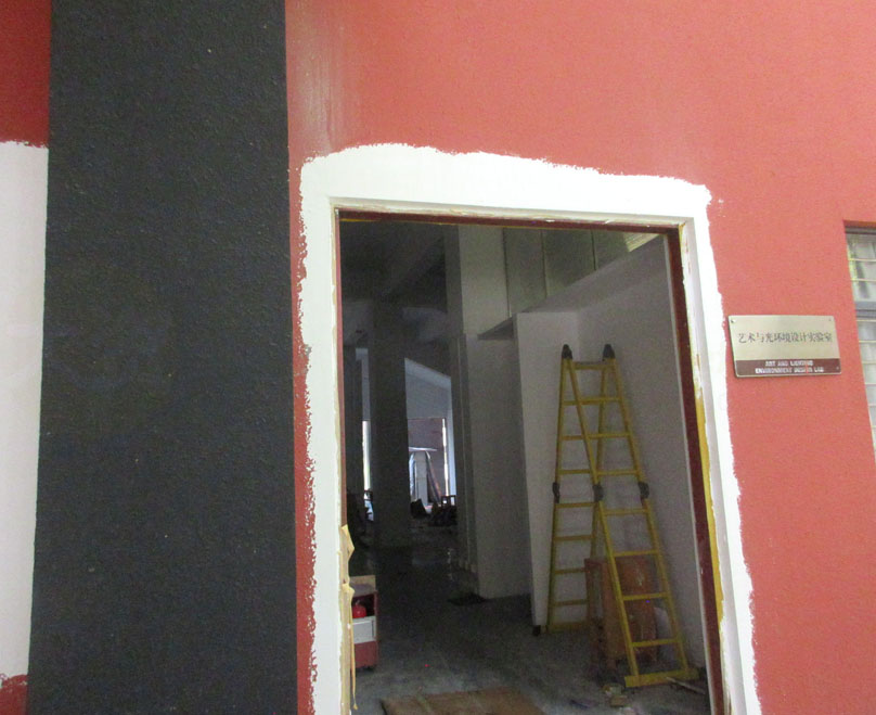 | 教学区南阶梯教室阶梯底下侧后的艺术与光环境实验室,似乎在进行粉刷墙面翻新以及小改造 | ||||||
