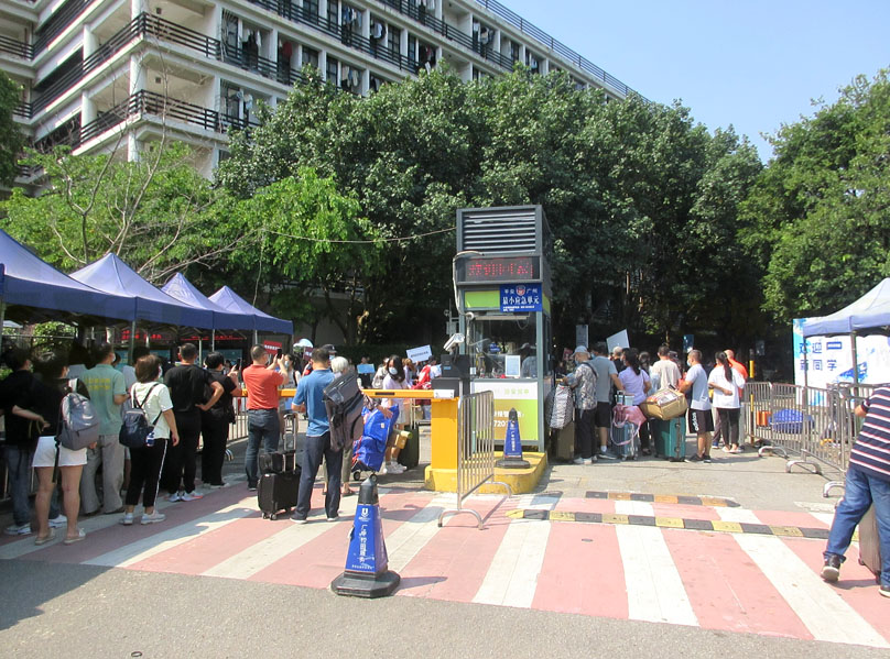 姗姗来迟 作为今年度大学城内所有高校中最迟新生报到的广美 今天也总算迎来2022级本科新生到校&报到 校园生活区内到处忙碌和热闹场景 本学期刚建成的增建的一栋学生宿舍楼也适时马上启用,据说能住约7、8、900人左右,今年广美继续有扩招近300人,本届新生人数达到又历史之最的1900多人,本身比较mini的广美近几年基本是逐年扩招个2、300人左右,但也感觉还是可以合适有,毕竟作为华南广东唯一的美术类艺术院校,每年招的人数就算现在已经达到2千人了,也还是说不上算多,或会因这点扩招而影响到有所降低教学水平或质量