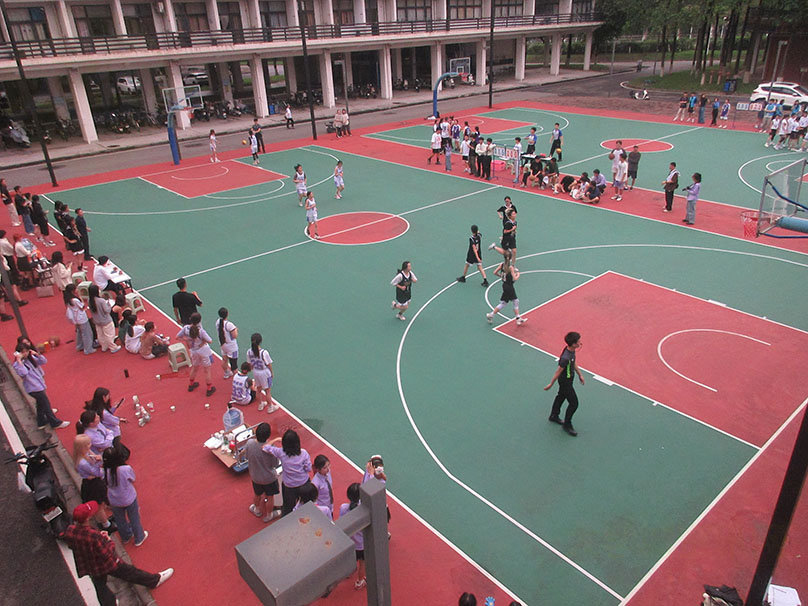 广州美术学院2024年院际全场篮球赛今天开始了 第一比赛日 首先进行的是女子组的四场小组赛 傍午时分 天色欲昏欲暗 想雨未雨 比赛进程看到好像是比较强弱悬殊或者