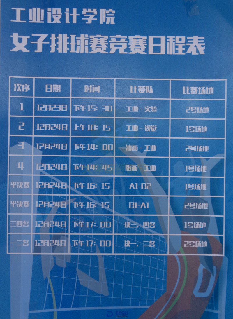 | 工业设计学院2017女子排球赛 12月23-24号 生活区体育馆 | ||||||
