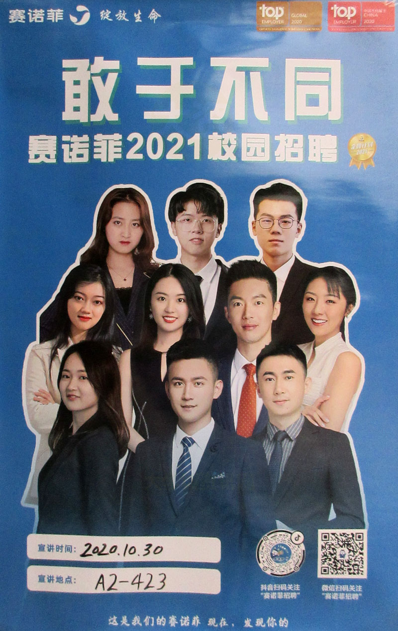 | 赛诺菲2021校园招聘 2020.10.30 教学区A2-423 | ||||||