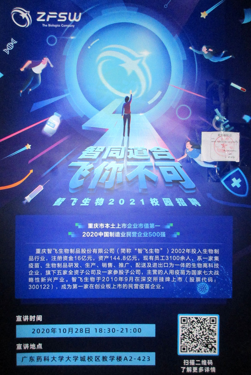 | 智飞生物2021校园招聘 2020年10月28日 18:30-21:00 教学区A2-423 | ||||||