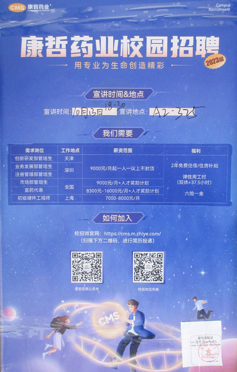 | 康哲药业2023校园招聘宣讲会 10月13日傍晚18点30分 教学区A2-325 | ||||||