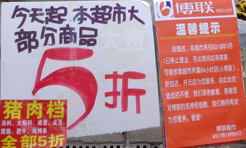 | 商中负一层博联超市公告称2018.1.1起将整改停业 | ||||||