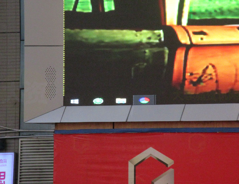 曾经损坏脱落已经废置近一年多的这块商中中庭广场的巨幅显示屏,经过近两个多星期的施工换装,今天看到再度闪亮了