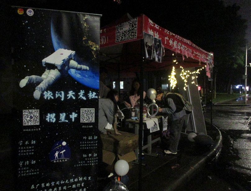| 晚上近八点了,铱闪天文社的招新还在生活区校道进行,且还有些小雨水 | ||||||