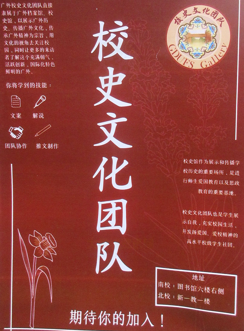 | 广外校史文化团队2022招新正在生活区主校道北苑3&4栋之间对出侧辅道进行 | ||||||