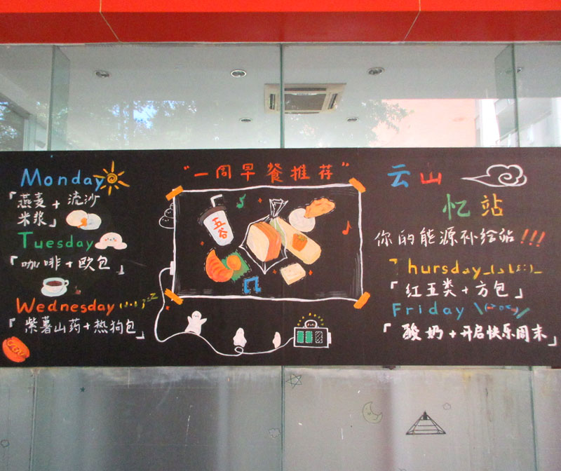 | 云山忆站一周早餐推荐 周一:燕麦+流沙+米浆 周二:咖啡+欧包 周三:紫薯山药+热狗包 | ||||||