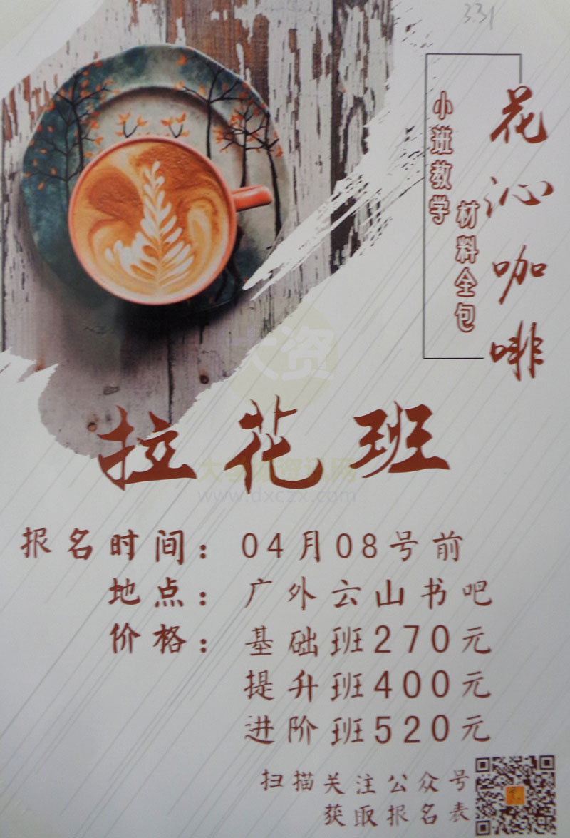 广外云山书吧花沁咖啡拉花班教学报名截止4月8号前