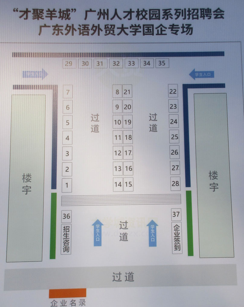 明天2023.04.27周四下午 教学区C栋一楼将有一场小型小规模招聘会举行 具体叫才聚羊城广州人才校园系列招聘会广外国企专场 从下午两点开始到近傍晚6点
