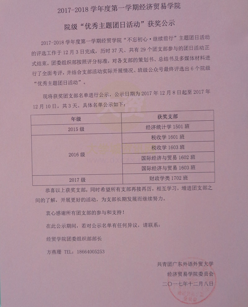 2017-2018学年度第一学期经济贸易学院院级“优秀主题团日活动”获奖公示