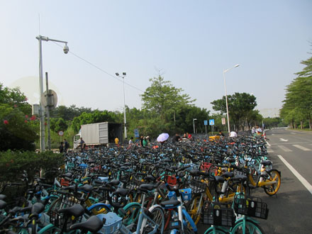 今天看到,教学区不让进,出中环北门外停满共享单车,密密麻麻,堆满一大片