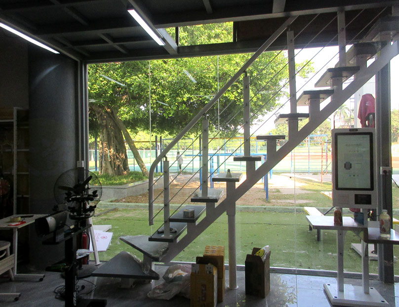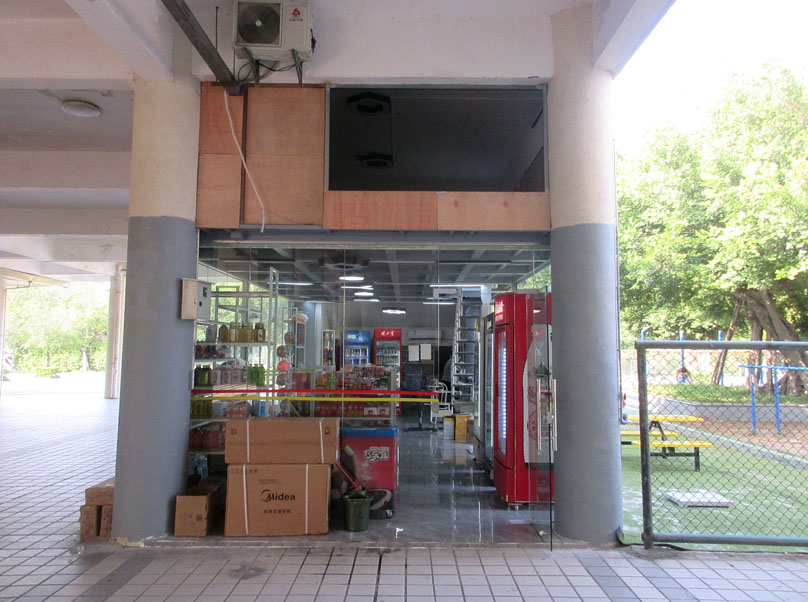 体育区中心田径场西北角外&二楼平台楼梯下 这家之前说在装修的体育用品服务店已经装好并看到已开在营业 细看似乎还有一个二楼隔层及南侧外观门面及东侧楼梯墙窗口and延伸外侧部分还待小修首尾完善中 店主说是国庆前就已经试业了 店内也不全是只买体育用品类商品,还有冰箱各种饮料水饮品及一些类似普通零食便利店士多店会有看到卖的各种食类品