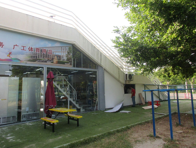 | 体育区中心田径场西北角外&二楼平台楼梯下 这家之前说在装修的体育用品服务店已经装好并看到已开在营业 | ||||||
