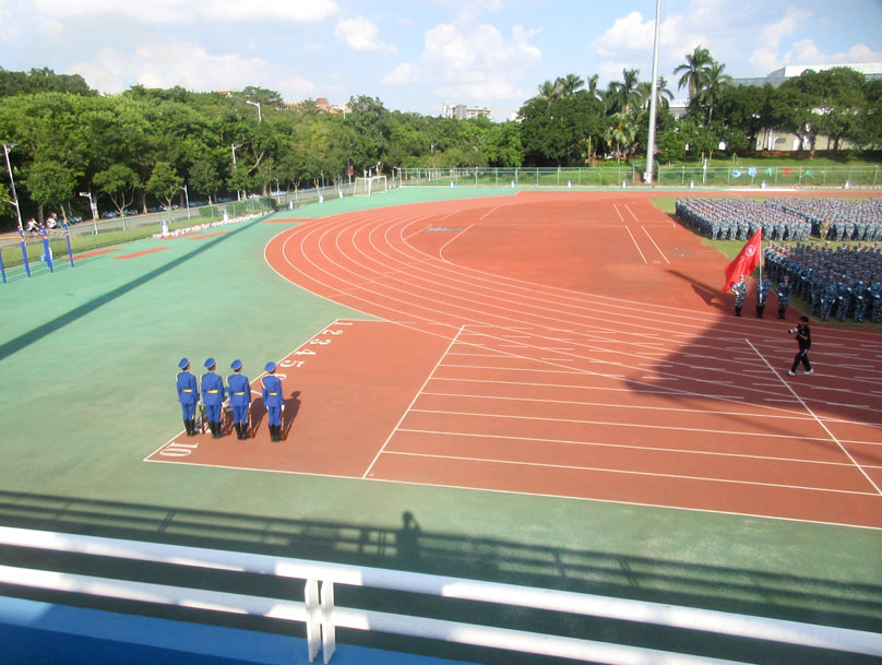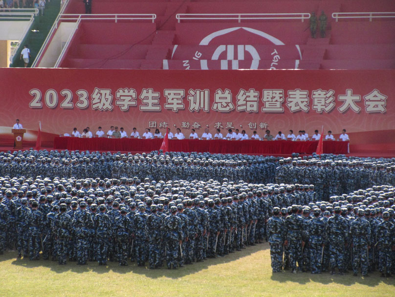| 广东工业大学大学城校区2023级本科新生军训检阅总结大会今下午在教学区中心田径场展开进行 | ||||||