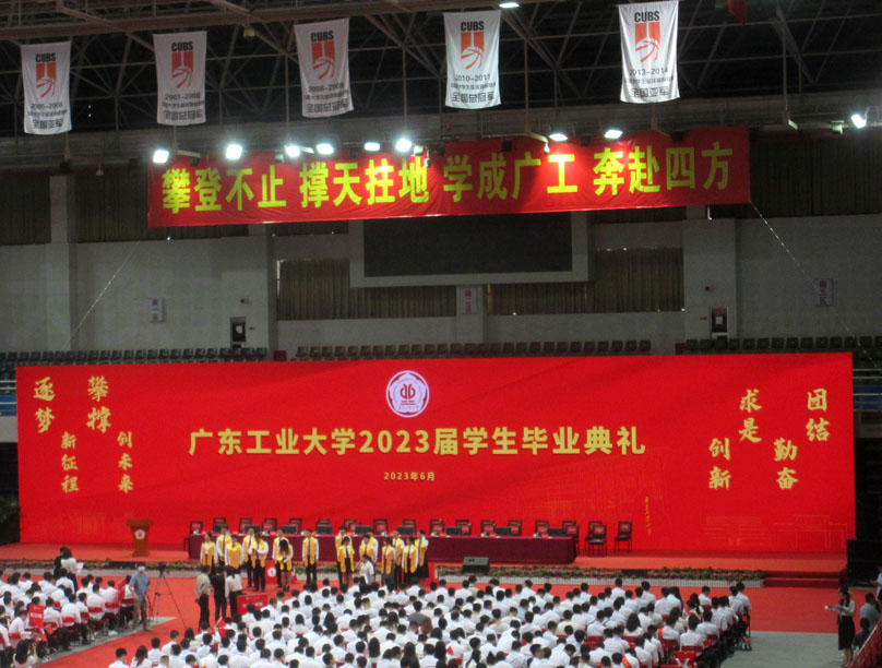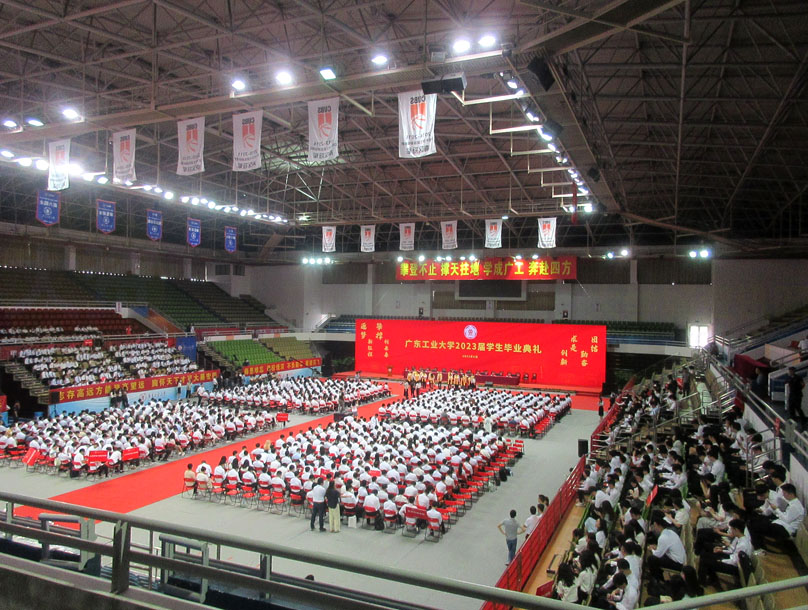 | 广东工业大学2023届学生毕业典礼即将在稍后10点开始 在大学城校区体育馆进行 | ||||||