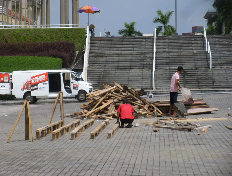 广工正门前 这是要摆装一些中秋/国庆主题的节庆景象吗