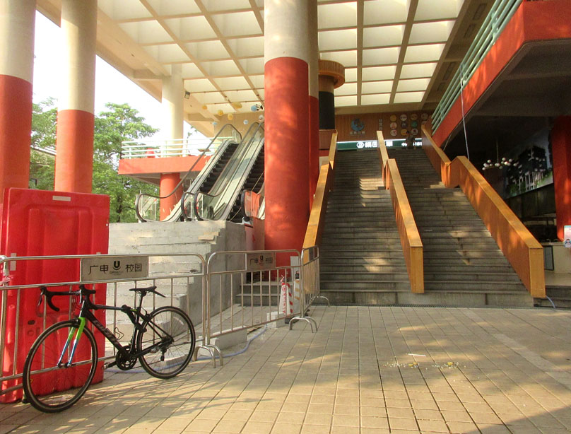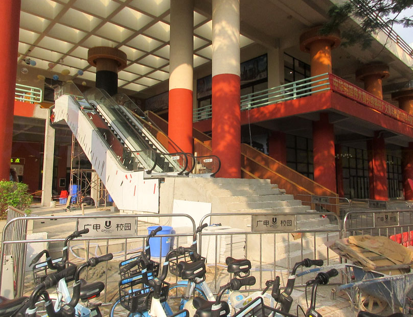 东区一饭西南角-这电梯装得怎么看,是不是有点多余和甚至妨碍到走自然楼梯上二楼,光是这个基座引阶梯就有11级台阶,等你走完这11级阶梯用的时间和工夫,是不是已经上到旁边自然楼梯的也二接平台了,再走所谓电梯,分分钟上到二楼平台还要比旁边的原始楼梯费劲费时呢,说这么多,就是要问,这样装个电梯的意义在哪?都有点妨碍这个西南角的观感了,装成这样的视象效果,还不如不装,恢复原样
