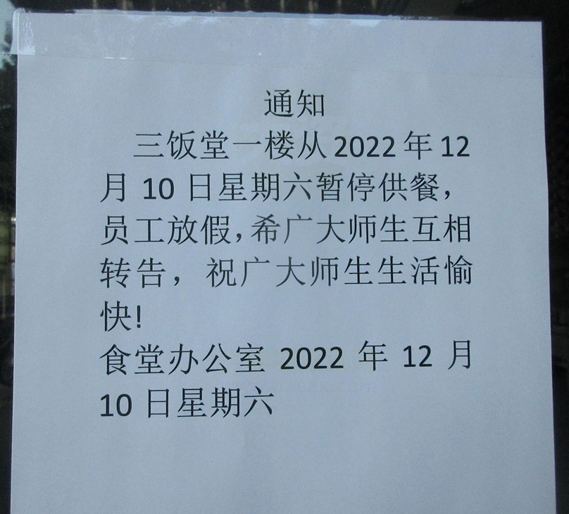 | 西区三饭一楼2022年12月10日起放假暂停供餐 | ||||||