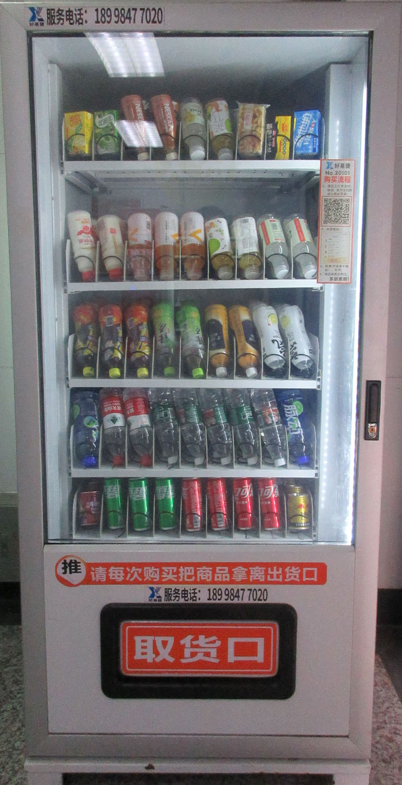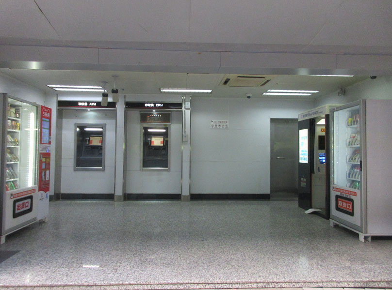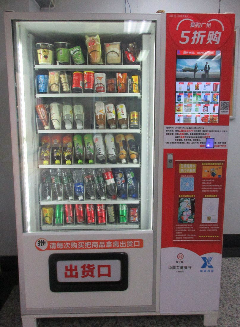 西区西七栋楼下工行ATM内 最近看到新摆放了两台饮料食品等自动售卖机