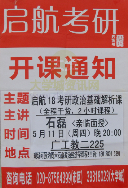 | 启航考研开课通知(石磊:政治基础)5.11晚教二225 | ||||||