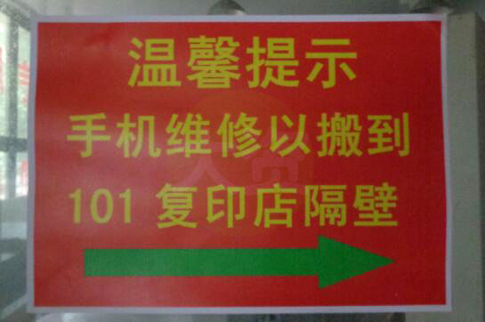 店面玻璃贴有提示手机维修点搬到旁边101复印店的隔壁,这个改变是临时的还是长期的?是否等该移动点全新装修后重新复位?